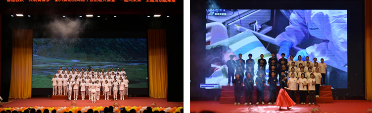朗誦片段《少年中國說》及大合唱《我的未來不是夢》告訴同學們只有堅定信心,才會圓夢;朗誦、大合唱《醫(yī)路向前—致敬最美逆行者》表達了對最美逆行者的崇高敬意。