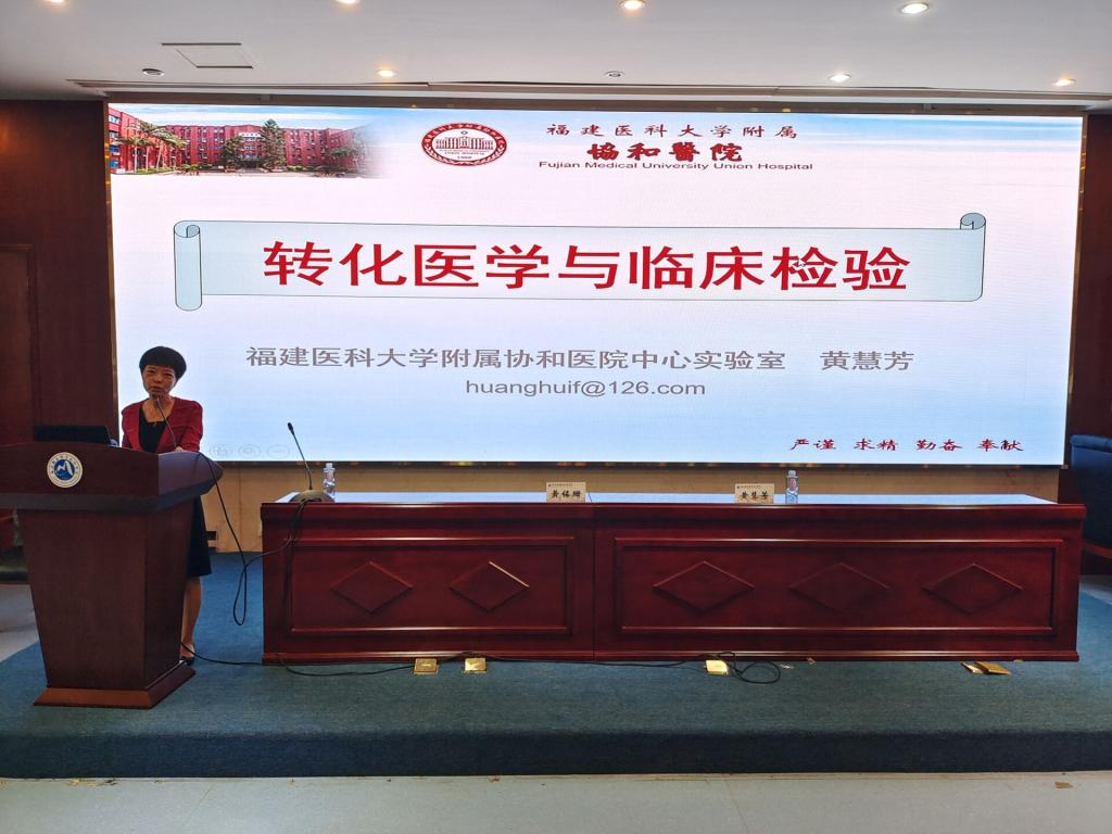 為引領(lǐng)教師教學(xué)更貼近臨床,強(qiáng)化學(xué)生職業(yè)素養(yǎng)和醫(yī)學(xué)人文教育,6月9日,醫(yī)學(xué)技術(shù)系在學(xué)校實(shí)訓(xùn)樓四樓報(bào)告廳組織師生200余人匯聚一堂,聆聽(tīng)“老檢驗(yàn)人”福建醫(yī)科大學(xué)附屬協(xié)和醫(yī)院中心實(shí)驗(yàn)室黃慧芳教授的職業(yè)心聲。講座由學(xué)校副校長(zhǎng)黃銘珊主持。