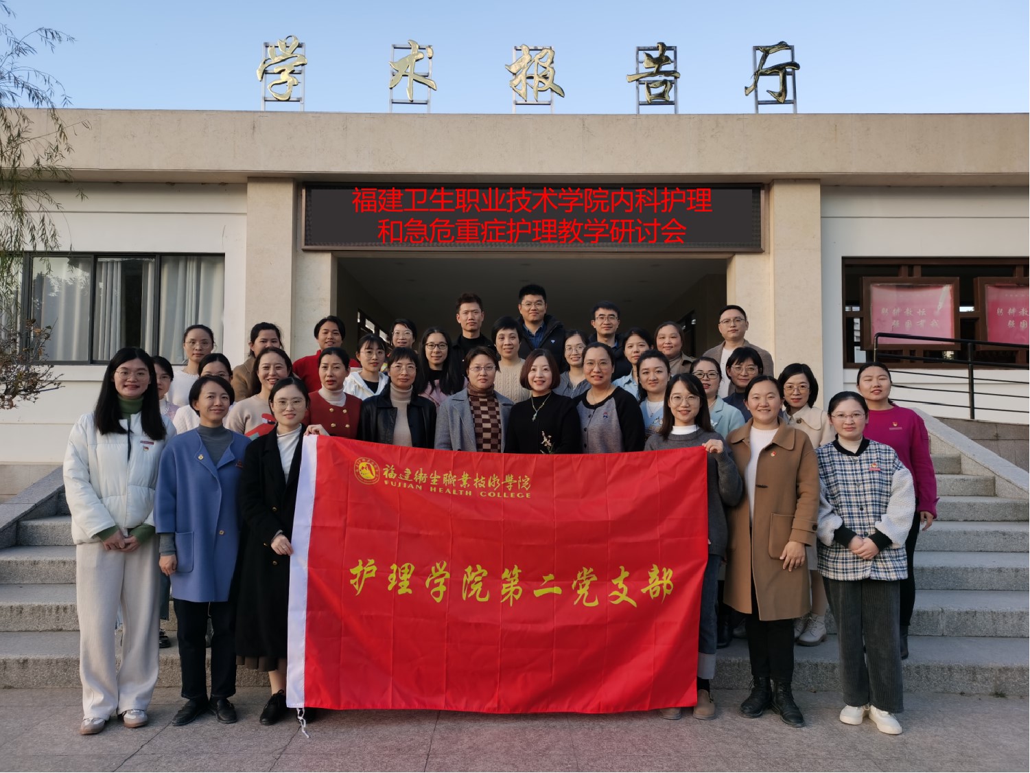 為深入學(xué)習(xí)貫徹習(xí)近平新時(shí)代中國特色社會(huì)主義思想,加強(qiáng)產(chǎn)教融合,深化校企合作,優(yōu)化復(fù)合型人才培養(yǎng),1月18日,我校護(hù)理學(xué)院第二黨支部內(nèi)科護(hù)理和急救護(hù)理黨小組聯(lián)同7所校企合作醫(yī)院——福建省立醫(yī)院、福建省腫瘤醫(yī)院、福建醫(yī)科大學(xué)孟超肝膽醫(yī)院、福建省婦幼保健院、福州市第二醫(yī)院、福建省福州肺科醫(yī)院及廈門兒童醫(yī)院相關(guān)課程臨床授課教師開展《內(nèi)科護(hù)理》《急危重癥護(hù)理》教學(xué)研討,共有33人參加會(huì)議。