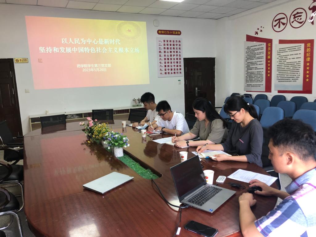 5月26日,藥學(xué)院學(xué)生第三黨支部書記陳翰在藥學(xué)院會議室開展題為《以人民為中心是新時代堅持和發(fā)展中國特色社會主義根本立場》的黨課,學(xué)生第三黨支部全體教師黨員參與。
