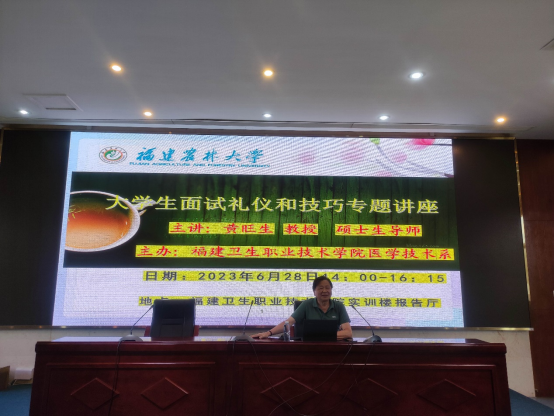 6月28日,福建農(nóng)林大學(xué)黃旺生教授來(lái)校為醫(yī)學(xué)技術(shù)系師生講授就業(yè)指導(dǎo)講座《大學(xué)生面試禮儀與技巧》。醫(yī)學(xué)技術(shù)系黨總支書記柯瓊鶯、輔導(dǎo)員代表及醫(yī)學(xué)技術(shù)系2023屆畢業(yè)生共同參加學(xué)習(xí)。