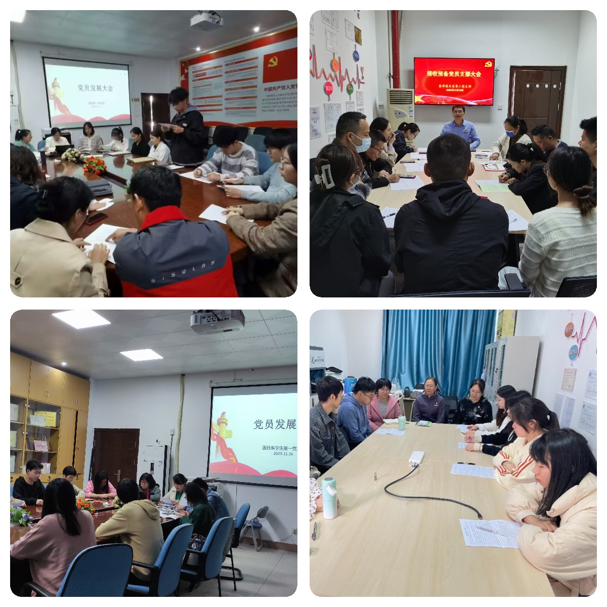 2023年11月16日,醫(yī)學(xué)技術(shù)系第一黨支部、第二黨支部、學(xué)生第一黨支部、學(xué)生第二黨支部分別召開(kāi)了接收預(yù)備黨員支部大會(huì),共接收21名師生為預(yù)備黨員。
