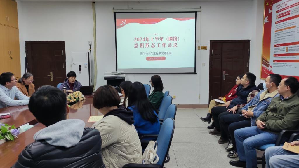 3月21日,醫(yī)學(xué)技術(shù)與工程學(xué)院召開2024年上半年(網(wǎng)絡(luò))意識形態(tài)工作會議。醫(yī)學(xué)技術(shù)與工程學(xué)院意識形態(tài)工作領(lǐng)導(dǎo)小組及辦公室成員參加會議,會議由學(xué)院黨總支書記柯瓊鶯主持。