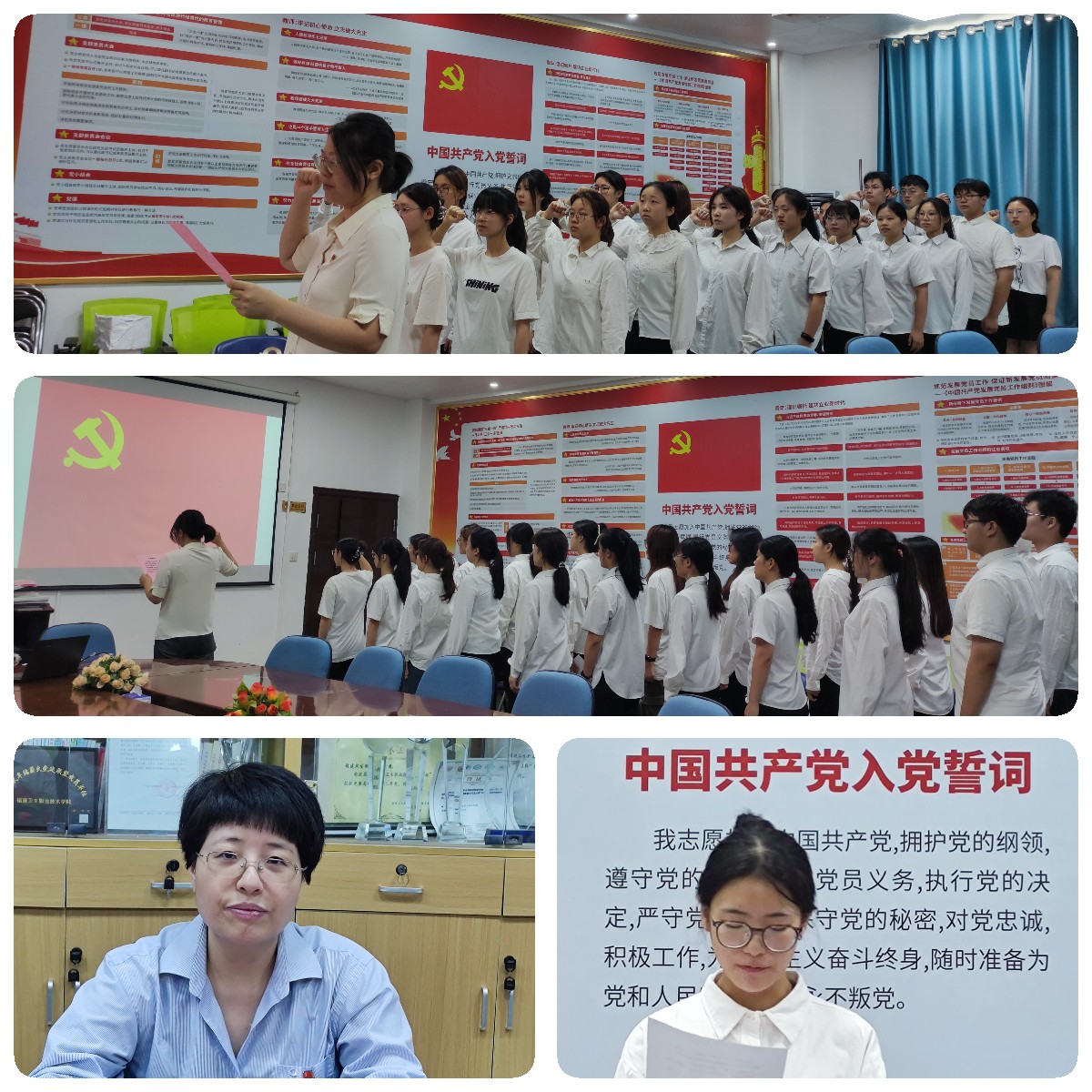 6月28日,學(xué)院舉行預(yù)備黨員入黨宣誓儀式。21名新黨員面向黨旗莊嚴(yán)宣誓,高舉右拳,鏗鏘有力地許下對(duì)黨忠誠(chéng)的堅(jiān)定諾言。學(xué)院黨委書(shū)記柯瓊鶯寄語(yǔ)新同志要銘記一生堅(jiān)守的入黨誓詞,爭(zhēng)當(dāng)一面閃光的先鋒旗幟,為黨和人民的事業(yè)奮斗拼搏。“能加入黨組織,成為一名共產(chǎn)黨員,我感到光榮和自豪。”新黨員代表陳雨微表示,要在今后的學(xué)習(xí)和工作中,牢記囑托、挺膺擔(dān)當(dāng),勇做健康中國(guó)建設(shè)的排頭兵,為推進(jìn)強(qiáng)國(guó)建設(shè)、民族復(fù)興貢獻(xiàn)青春力量。