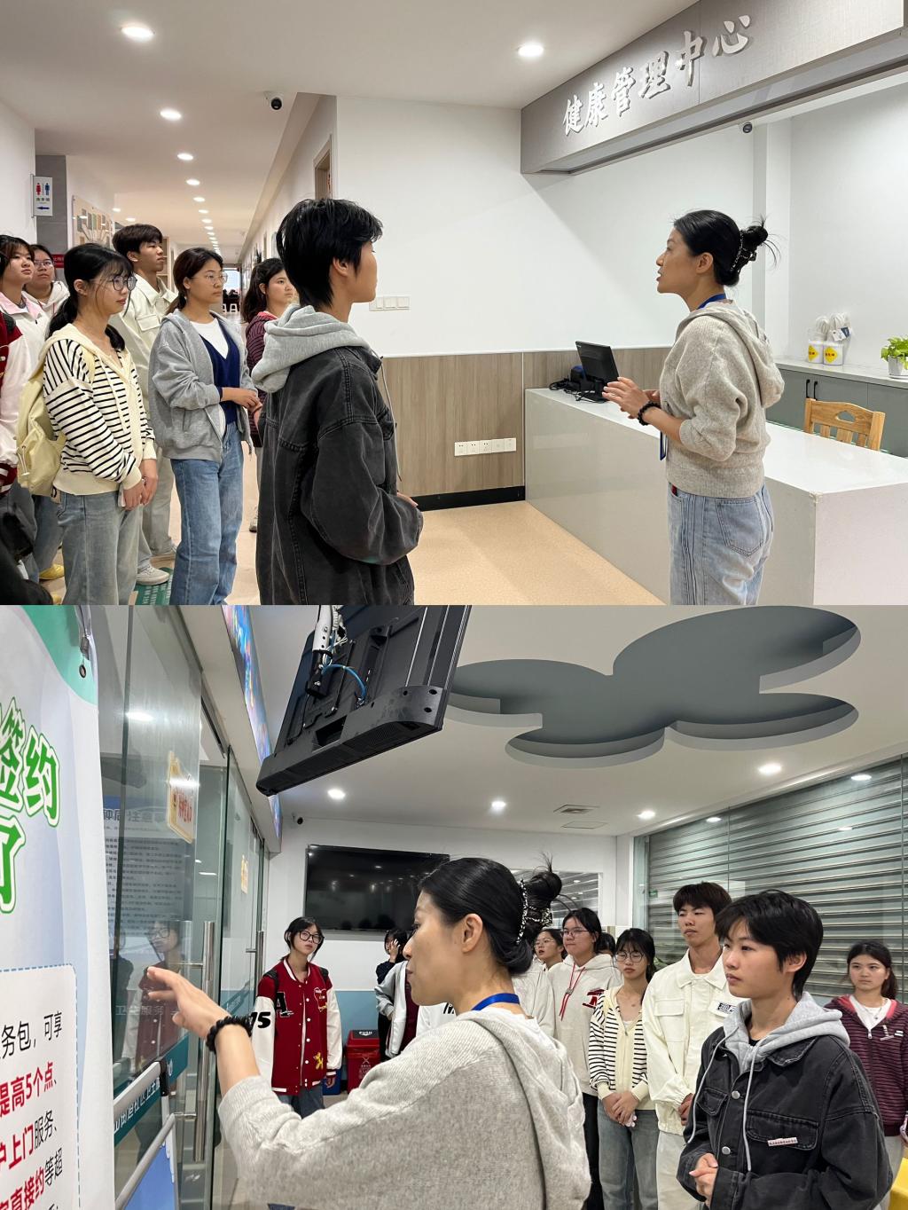 活動上,由魏蘭芳老師帶領(lǐng)閩衛(wèi)院師生參觀倉山區(qū)金山街道社區(qū)衛(wèi)生服務(wù)中心的門診樓與公衛(wèi)樓,過程中魏蘭芳老師熱情洋溢地給閩衛(wèi)院師生講解該地區(qū)的設(shè)施、設(shè)備以及其用途。在“德醫(yī)交融,實踐育人”的理念指導(dǎo)下,我院不斷深化人文關(guān)懷,作為醫(yī)務(wù)工作者,我們深感責(zé)任重大,全會提出的新思想、新觀點、新論斷、新要求,對我國醫(yī)療衛(wèi)生事業(yè)發(fā)展有著重要指導(dǎo)意義。