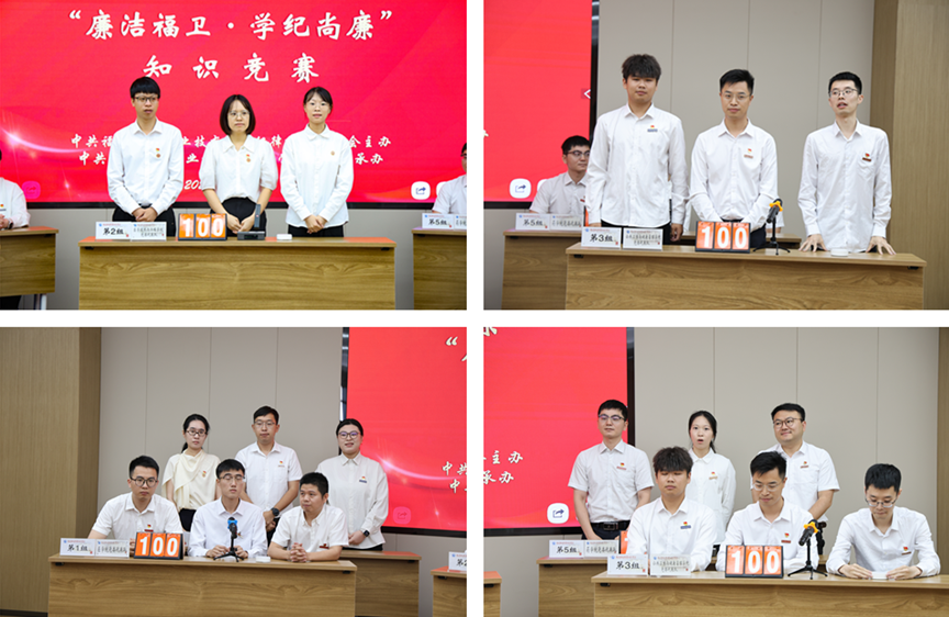 此次知識(shí)競賽緊密圍繞習(xí)近平總書記關(guān)于加強(qiáng)黨的作風(fēng)建設(shè)的重要論述、中央八項(xiàng)規(guī)定及其實(shí)施細(xì)則、中國共產(chǎn)黨紀(jì)律處分條例、黨政機(jī)關(guān)厲行節(jié)約反對浪費(fèi)條例等內(nèi)容展開。各學(xué)院選派的五支師生代表隊(duì)在“必答題”“搶答題”“風(fēng)險(xiǎn)題”這三個(gè)環(huán)節(jié)進(jìn)行了精彩比拼,活動(dòng)現(xiàn)場氣氛熱烈,參賽選手精神飽滿、沉著冷靜,既展現(xiàn)出扎實(shí)的政治理論素養(yǎng),又展示了團(tuán)隊(duì)之間的緊密協(xié)作精神。