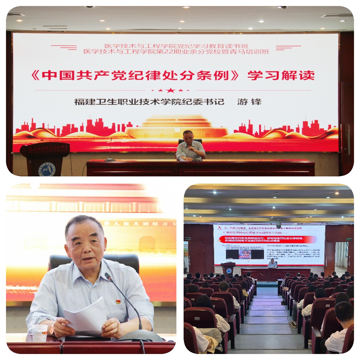 4月25日,醫(yī)學(xué)技術(shù)與工程學(xué)院開展黨紀學(xué)習(xí)教育專題黨課暨讀書班開班式。校紀委書記游鋒圍繞新修訂的《中國共產(chǎn)黨紀律處分條例》講授專題黨課。醫(yī)學(xué)技術(shù)與工程學(xué)院黨總支書記柯瓊鶯主持開班式并講話,學(xué)院黨員及入黨積極分子參加學(xué)習(xí)。