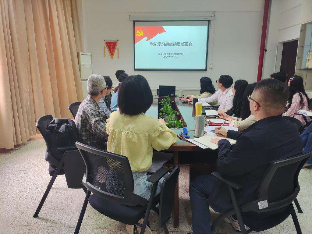 為全面落實(shí)《關(guān)于在全黨開展黨紀(jì)學(xué)習(xí)教育的通知》的要求,2024年4月18日,直屬馬克思主義學(xué)院黨支部在厚德樓107會(huì)議室開展黨紀(jì)學(xué)習(xí)教育動(dòng)員部署會(huì)。會(huì)議由黨支部書記熊美蘭主持,支部全體黨員參加。