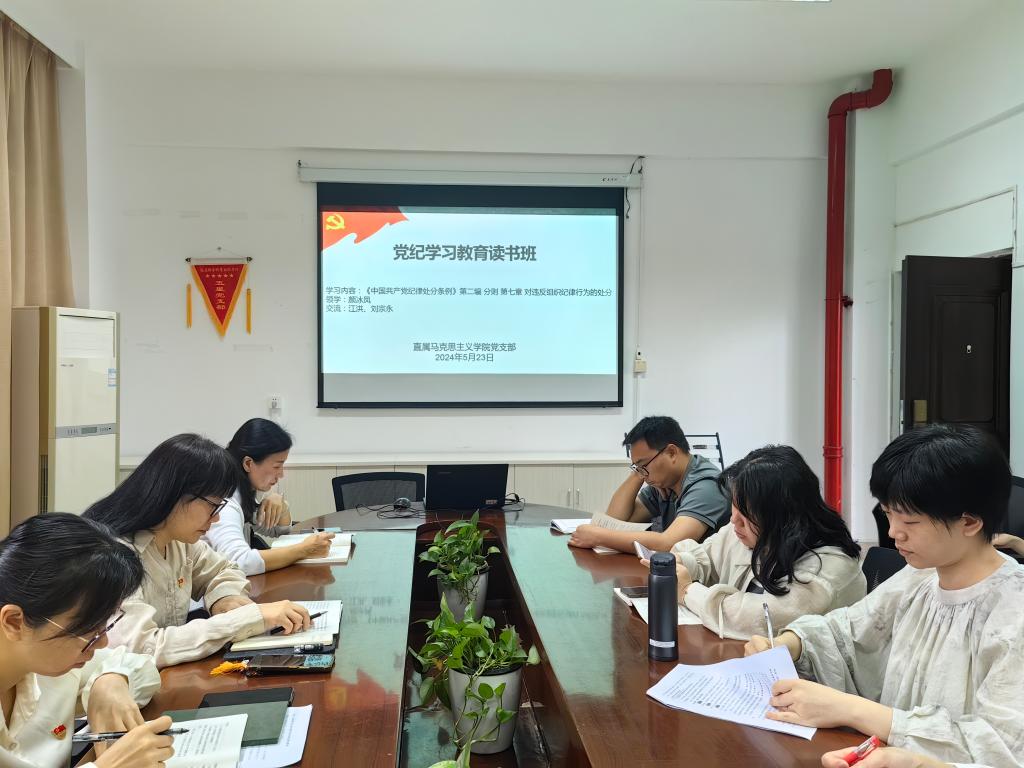 為進一步嚴明黨的組織紀律,增強黨員組織觀念,2024年5月23日,直屬馬克思主義學院黨支部黨紀學習教育讀書班在厚德樓107會議室圍繞《中國共產(chǎn)黨紀律處分條例》開展第三次集體學習活動。