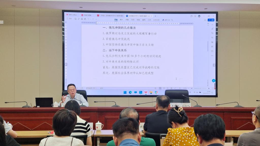 此次講座政治站位高遠(yuǎn)、理論視野開闊、分析闡述透徹,讓在場師生對當(dāng)前和今后一個時期國際形勢的基本特征和演變趨勢有了清晰認(rèn)識,為我校師生今后的學(xué)習(xí)和研究提供有益指導(dǎo)。