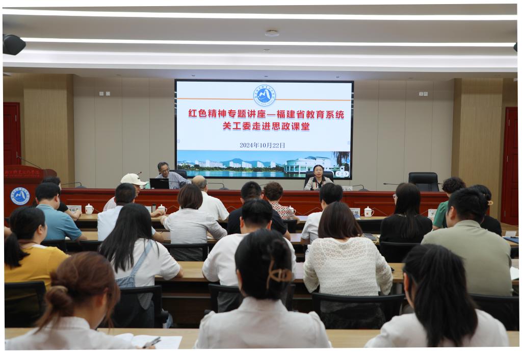 為深入學習貫徹習近平新時代中國特色社會主義思想,發(fā)揚紅色傳統(tǒng),傳承紅色基因,引領師生繼續(xù)堅定跟黨走、建功新時代,10月22日,我校關工委邀請福建省教育系統(tǒng)關工委主任陳晃走進學校思政課堂,為校師生代表舉辦紅色精神專題講座,福建省教育系統(tǒng)關工委副秘書長、辦公室主任羅永倩陪同。校關工委主任嚴肅、副主任陳雄出席講座,校關工委、二級學院關工委、學生工作部黨支部、團委負責人、輔導員代表和學生代表共100余人參加講座,講座由副校長、校關工委副主任黃銘珊主持。