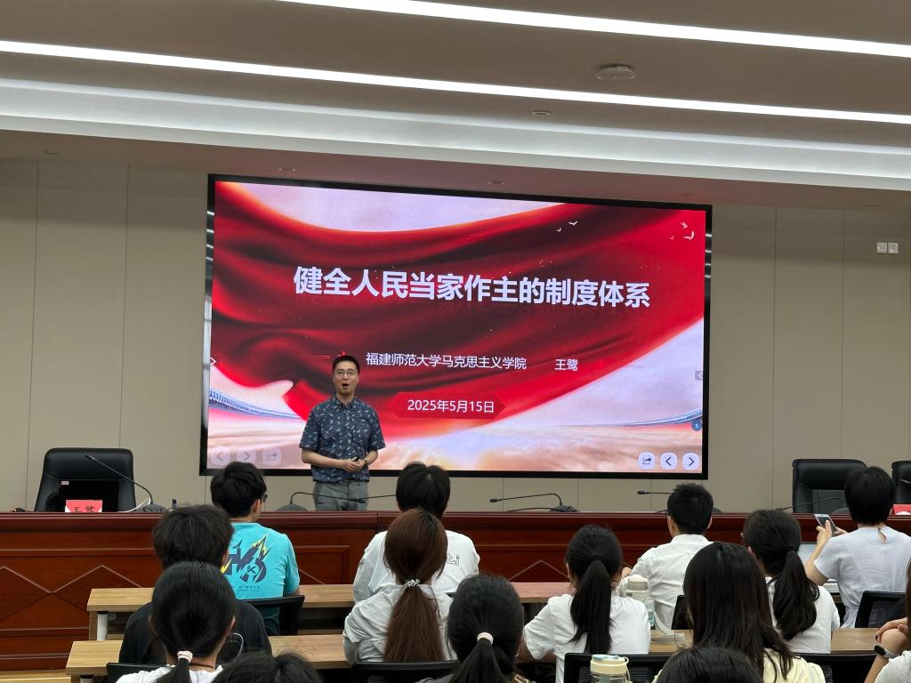 為深入貫徹落實(shí)黨的二十大和二十屆三中全會精神,推動(dòng)新時(shí)代思想政治理論課改革創(chuàng)新,提升全校師生對中國特色社會主義制度體系的理解,5月15日,我校邀請福建師范大學(xué)馬克思主義學(xué)院副教授王鷺在厚德樓六樓會議室作題為《健全人民當(dāng)家作主的制度體系》專題講座。講座由馬克思主義學(xué)院黨總支副書記賴文金主持,馬克思主義學(xué)院全體專兼職教師、學(xué)生代表參加。