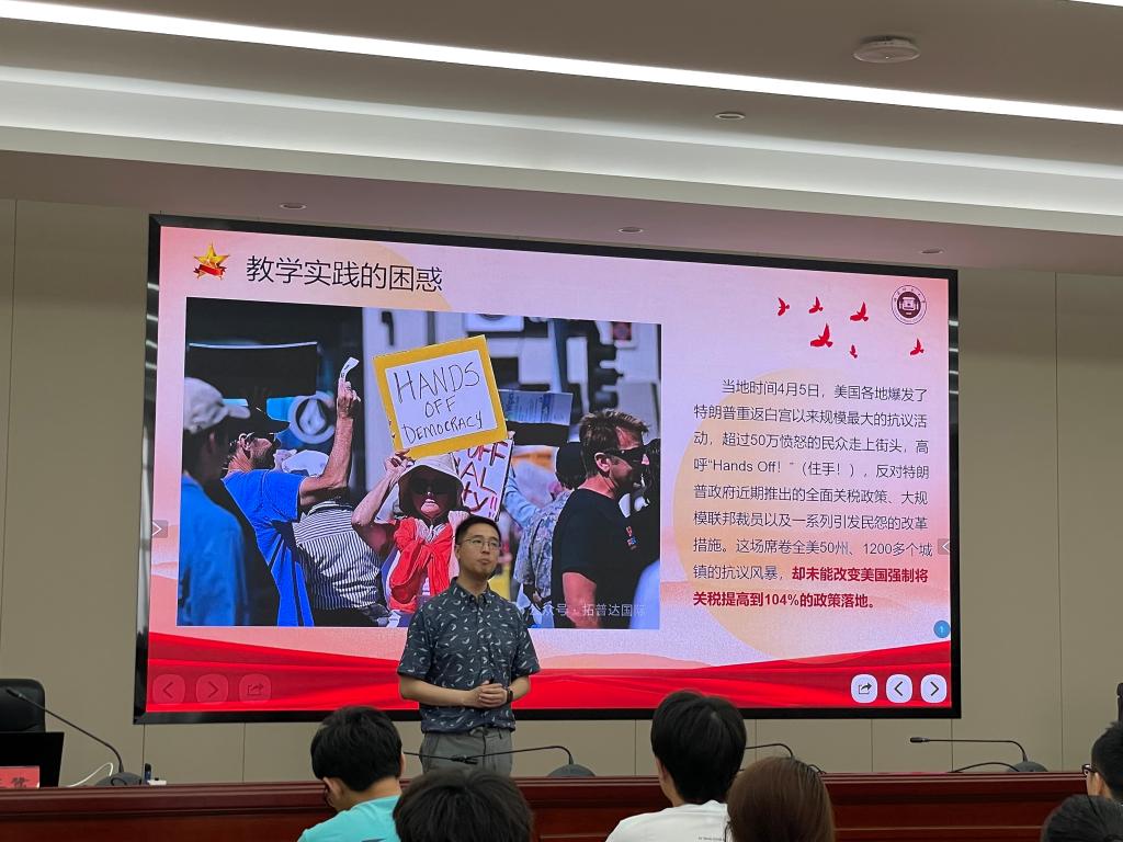 王鷺從民主的教學(xué)實(shí)踐困惑出發(fā),圍繞“教學(xué)情況”“教學(xué)方法和教學(xué)設(shè)計(jì)”“教學(xué)過程”“教學(xué)反思”四個(gè)方面展開,系統(tǒng)梳理了健全人民當(dāng)家作主制度體系的多重路徑,既有政策解讀的深度,又有案例分析的生動(dòng)。他強(qiáng)調(diào),健全人民當(dāng)家作主的制度體系是中國特色社會主義政治發(fā)展的必然要求,必須堅(jiān)持黨的領(lǐng)導(dǎo)、人民當(dāng)家作主和依法治國的有機(jī)統(tǒng)一,并通過基層民主實(shí)踐、人大代表履職等鮮活事例,展現(xiàn)了我國社會主義民主政治的生機(jī)活力。