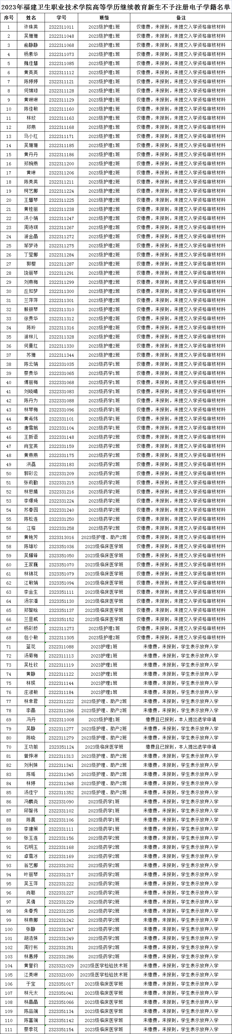 附件:2023年福建衛(wèi)生職業(yè)技術學院高等學歷繼續(xù)教育新生不予注冊電子學籍名單