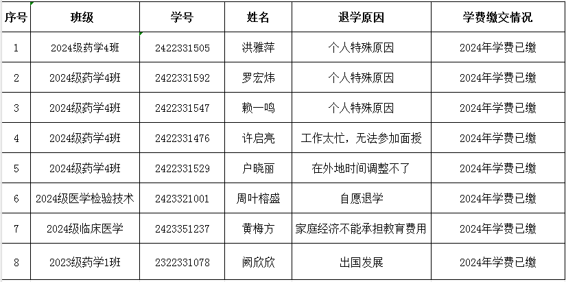關(guān)于闕欣欣、洪雅萍、羅宏煒等8名學(xué)生退學(xué)的公示
