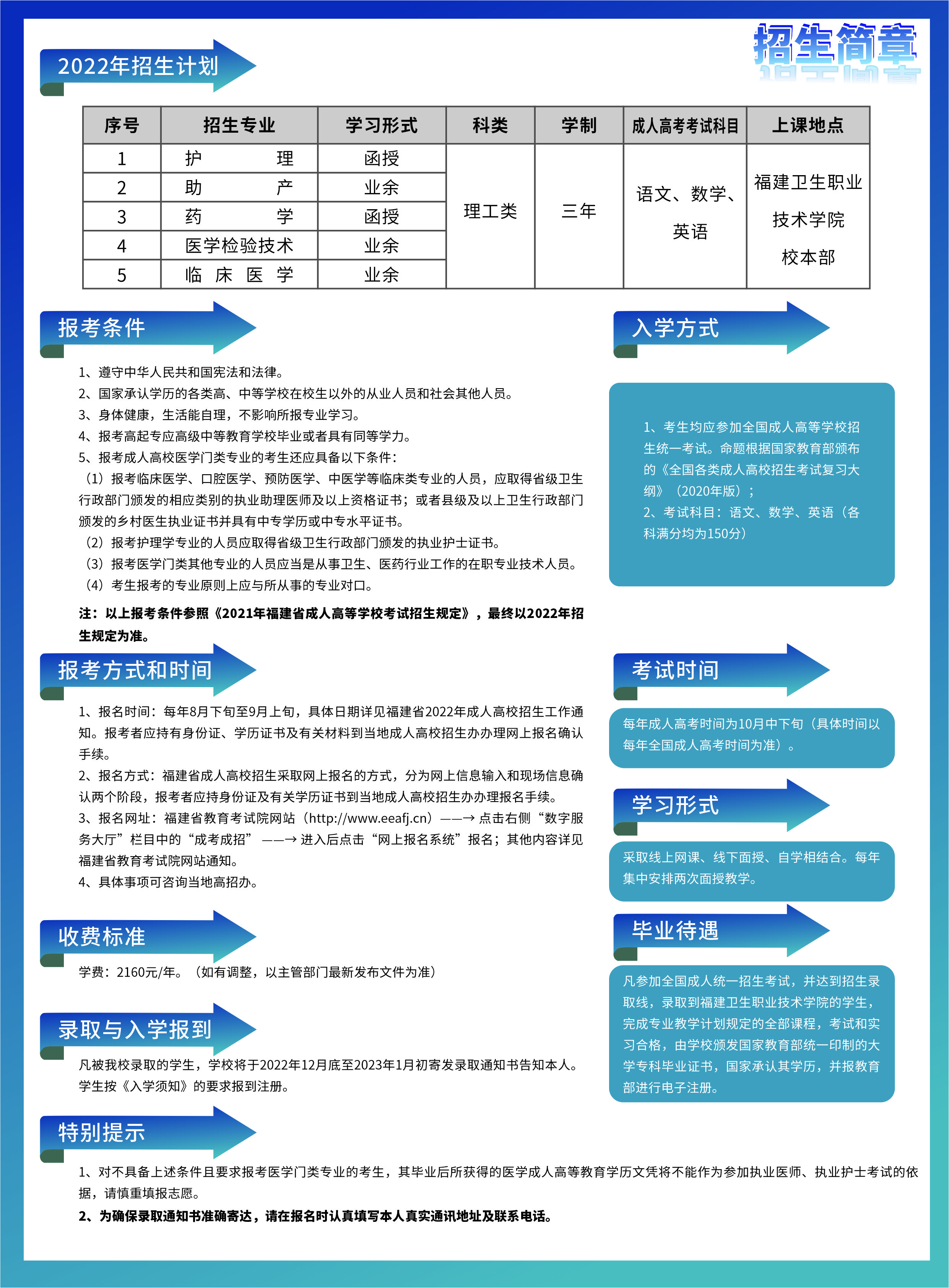 福建衛(wèi)生職業(yè)技術(shù)學(xué)院2022年高等學(xué)歷繼續(xù)教育招生簡章