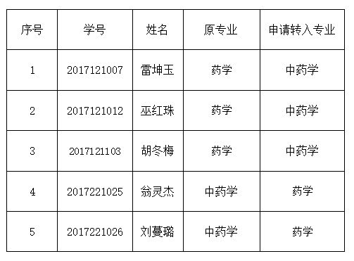 根據(jù)中國藥科大學(xué)繼續(xù)教育學(xué)院相關(guān)管理規(guī)定,2020級(jí)雷坤玉等5人因個(gè)人工作需要等原因,提出轉(zhuǎn)專業(yè)申請(qǐng),經(jīng)班主任審核,我站研究審議,該5名學(xué)生符合轉(zhuǎn)專業(yè)條件,同意轉(zhuǎn)專業(yè),并上報(bào)中國藥科大學(xué)繼續(xù)教育學(xué)院審批。 現(xiàn)將轉(zhuǎn)專業(yè)名單予以公示,公示期12月21日至12月25日,如有異議,請(qǐng)以書面形式在公示期內(nèi)向我站反饋。聯(lián)系電話:0591-22869959
