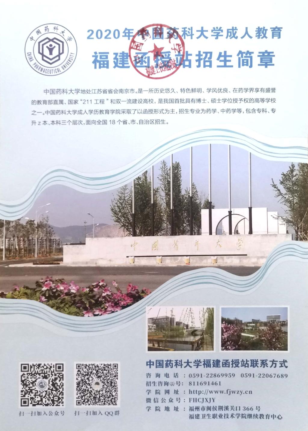 2020年中國藥科大學成人高等教育招生簡章