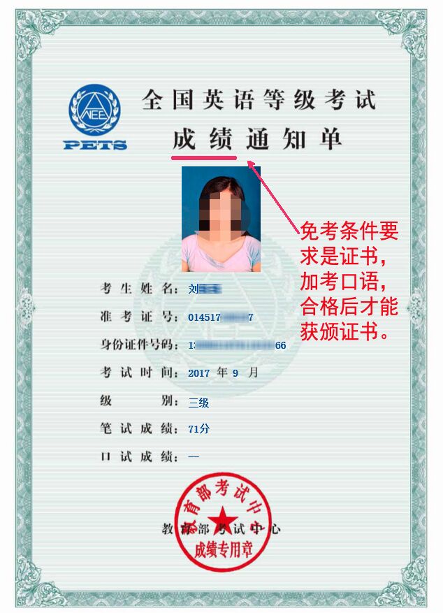 筆試成績通知單樣本如下(免考無效)