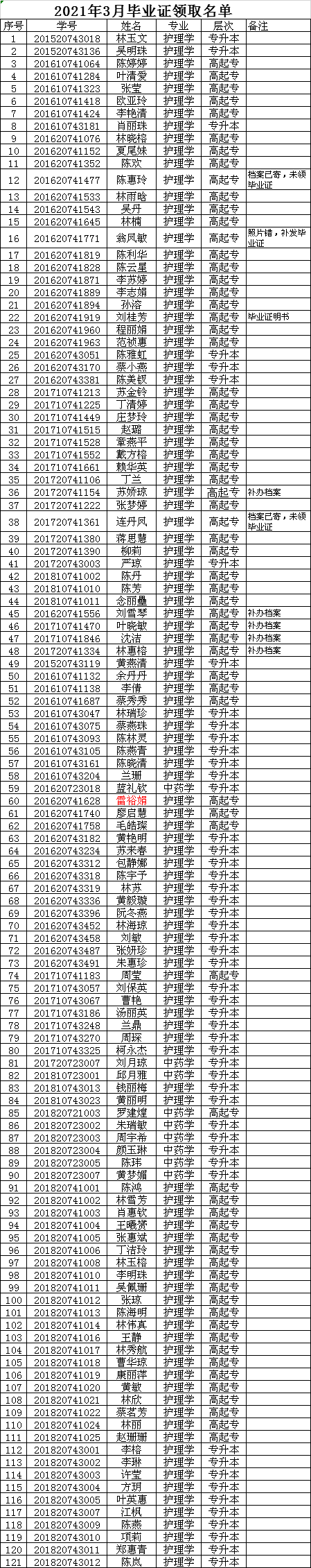 3. 收取到畢業(yè)材料時(shí)請(qǐng)立即核對(duì)畢業(yè)信息,如有疑義及時(shí)提出。畢業(yè)證原件只有一份,遺失后無(wú)法補(bǔ)發(fā),請(qǐng)各位同學(xué)妥善保管。