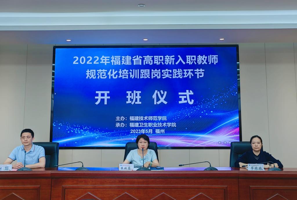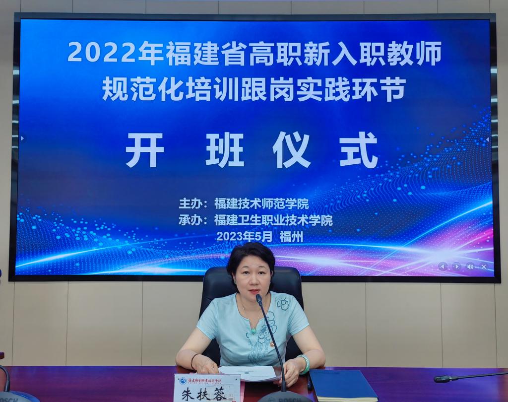 為做好我省2022年度職業(yè)院校教師素質(zhì)提高計(jì)劃中高職新入職教師規(guī)范化培訓(xùn),受福建技術(shù)師范學(xué)院委托,由我校承辦的高職新入職教師規(guī)范化培訓(xùn)跟崗實(shí)踐環(huán)節(jié)(醫(yī)藥衛(wèi)生類)開班儀式于5月22日在行政樓六樓會(huì)議室召開。副校長(zhǎng)朱扶蓉,教務(wù)處以及各學(xué)院(系、部)相關(guān)負(fù)責(zé)人,跟崗實(shí)踐導(dǎo)師和14名新入職教師參加開班儀式。開班儀式由繼續(xù)教育學(xué)院副院長(zhǎng)何烜主持。