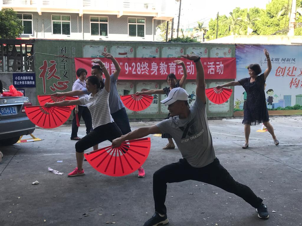 基礎(chǔ)部以“9?28終身教育活動日”為契機(jī),開展社區(qū)功夫扇培訓(xùn)活動,吸引了很多本不愿從事體育鍛煉的居民,投身到了學(xué)習(xí)鍛煉的熱潮中,活動不僅幫助社區(qū)居民強(qiáng)身健體,滿足了大家求新、求知、求美的愿望,更營造全民學(xué)習(xí)、終身學(xué)習(xí)的良好氛圍。