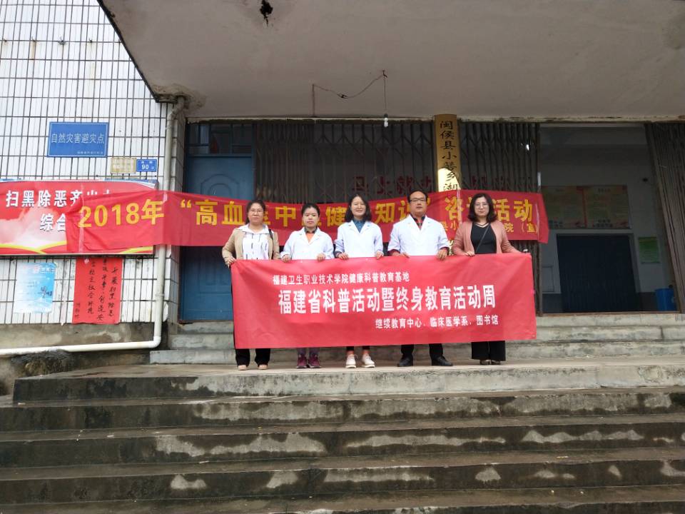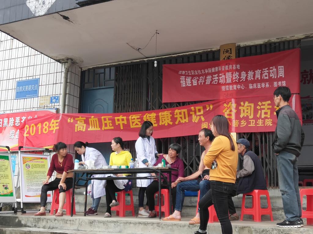 為響應(yīng)“全民終身教育活動周”號召,迎接第21個全國高血壓日,做好高血壓等醫(yī)學(xué)知識科普工作,10月15日,繼續(xù)教育中心、臨床醫(yī)學(xué)系、圖書館組織了“科普進(jìn)鄉(xiāng)村”高血壓義診活動,旨在通過此此項(xiàng)活動提高人們對高血壓危害的認(rèn)識,增強(qiáng)對高血壓病及其并發(fā)癥的防范意識。本次義診活動地點(diǎn)設(shè)在福州閩侯縣小箬鄉(xiāng)湖柄村的小箬鄉(xiāng)衛(wèi)生院,閩侯縣科學(xué)技術(shù)協(xié)會主席潘桂光、臨床醫(yī)學(xué)林國威副主任、圖書館副館長張麗萍、吳艷芳、王雯婷、梁晨老師參加了本次活動。