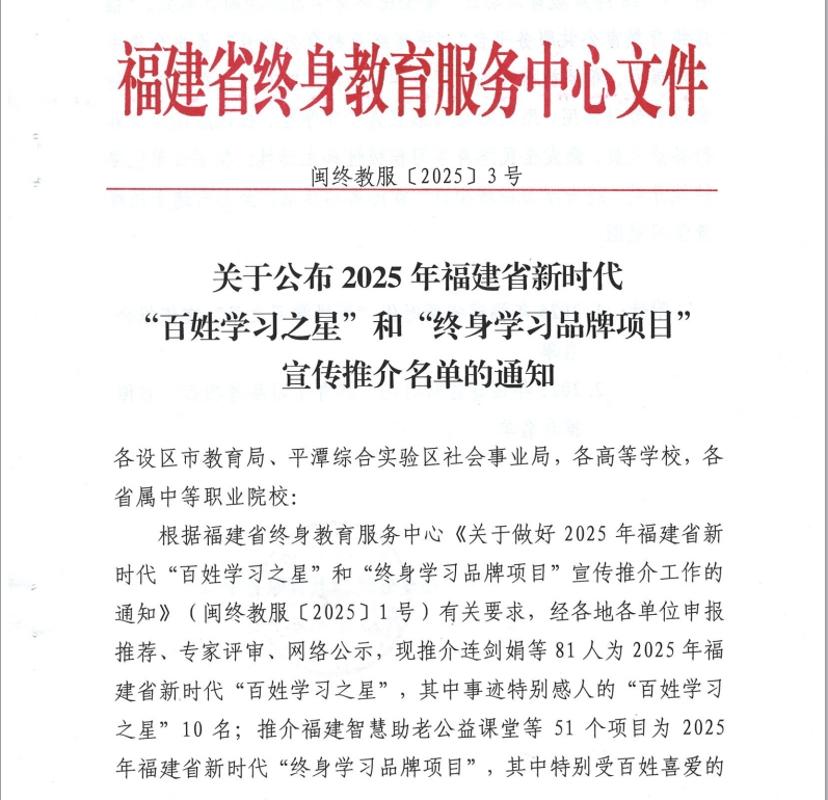 喜報|我校多個項目入選2025年福建省終身教育推介名單