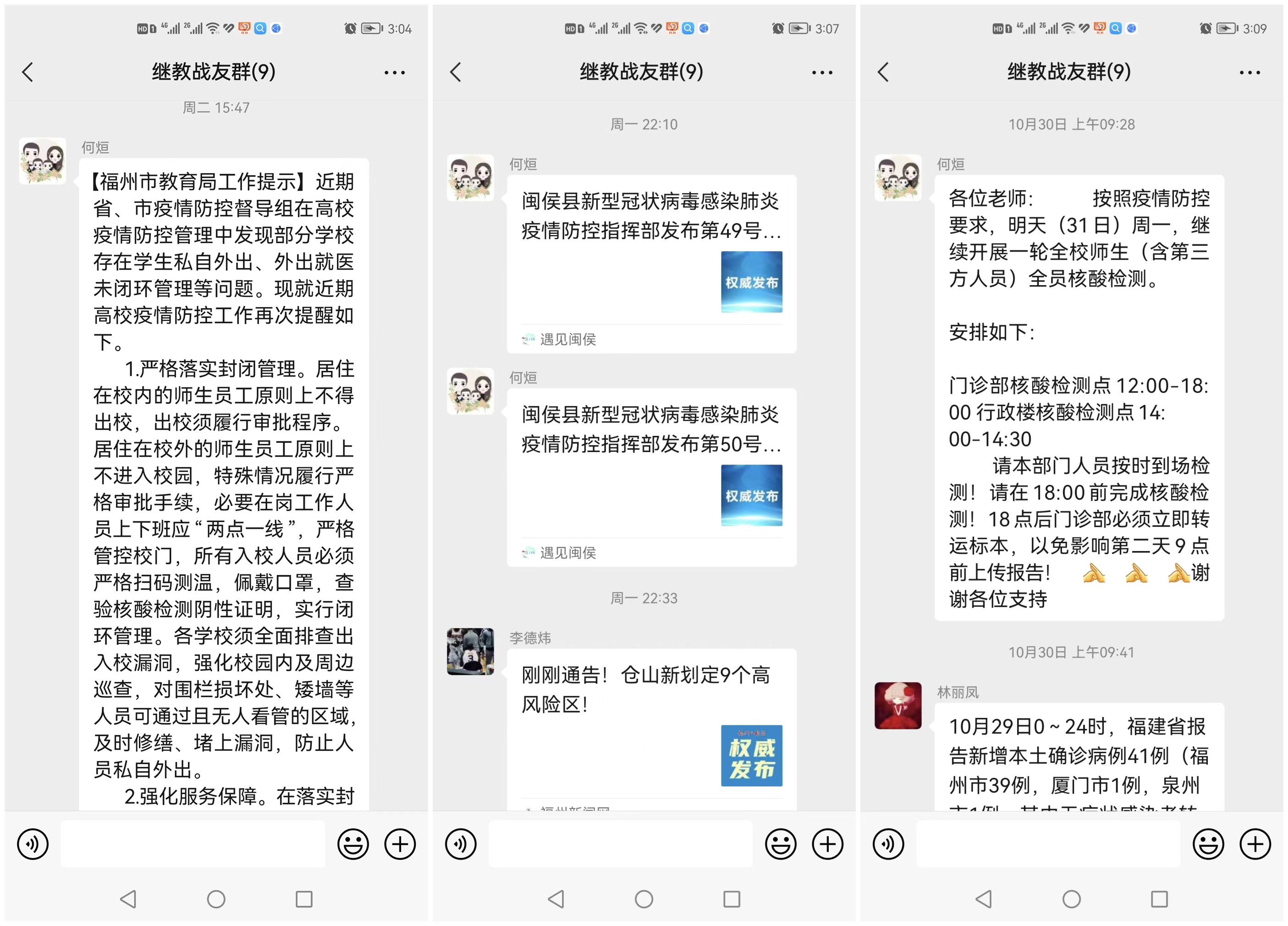 支部黨員及入黨積極分子積極響應(yīng)院直機(jī)關(guān)黨總支號召,投身校園疫情防控一線,參與學(xué)校全員核酸檢測現(xiàn)場、餐廳、校園超市等秩序維護(hù)、防控宣傳等,他們在疫情面前,勇于擔(dān)當(dāng),挺身而出,以實(shí)際行動踐行初心、擔(dān)當(dāng)使命,為全校師生構(gòu)筑了一道疫情防控的堅固防線貢獻(xiàn)繼教力量。
