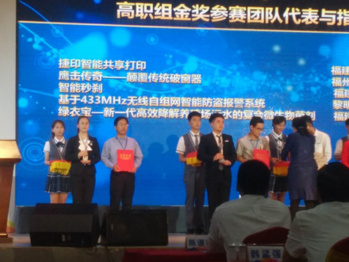 頒獎儀式上,省委常委、統(tǒng)戰(zhàn)部部長雷春美,全國政協(xié)常委、福建中華職業(yè)教育社主任郭振家為獲獎?wù)哳C獎,并發(fā)表講話,希望各職業(yè)院校著力培養(yǎng)學(xué)生的創(chuàng)新精神、創(chuàng)業(yè)意識和能力,更好地適應(yīng)福建產(chǎn)業(yè)發(fā)展特色和企業(yè)創(chuàng)新發(fā)展的需要,為建設(shè)新福建提供人才保障。