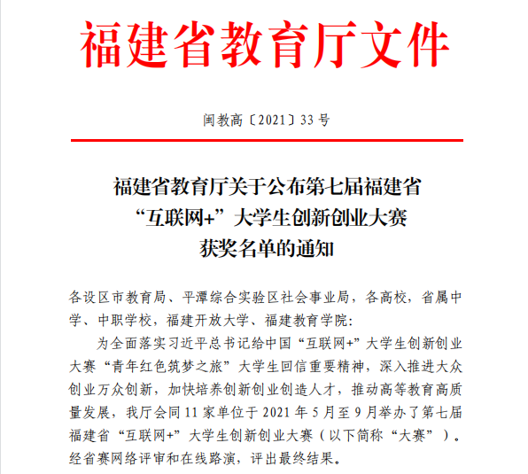 2021年第七屆福建省“互聯(lián)網(wǎng)+”大學(xué)生創(chuàng)新創(chuàng)業(yè)大賽獲獎項目信息