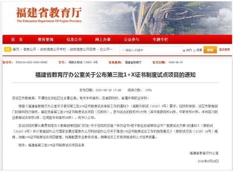 1+X證書制度(學(xué)歷證書+若干職業(yè)技能等級證書)是國家職業(yè)教育改革的重要舉措。4月16日,福建省教育廳啟動第三批1+X證書制度試點申報工作,我院領(lǐng)導(dǎo)高度重視,組織教務(wù)處和相關(guān)系部認真論證、積極申報。此次獲批福建省第三批1+X證書制度試點項目,將對我院深化職業(yè)教育改革,推進“學(xué)歷證書”和“職業(yè)技能等級證書”的有機銜接,提高人才培養(yǎng)質(zhì)量起到積極地推動作用。