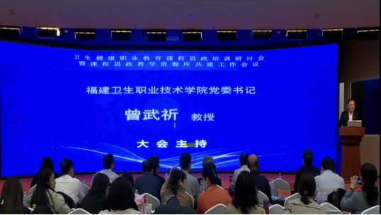 本次會(huì)議圍繞“衛(wèi)生健康職業(yè)教育課程思政培訓(xùn)研討及資源庫(kù)共建共享”兩個(gè)主題,邀請(qǐng)了8位國(guó)內(nèi)知名的課程思政研究專(zhuān)家、國(guó)家級(jí)課程思政教學(xué)研究中心及示范課程主持人,從學(xué)校、教師、專(zhuān)業(yè)、課程、課堂、資源建設(shè)等層面做了專(zhuān)題講座。我校黨委書(shū)記曾武祈作為大會(huì)主持之一。