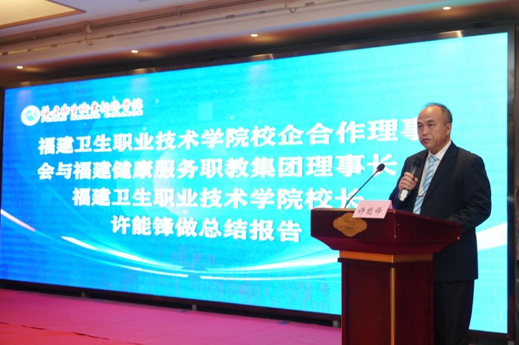 會(huì)議最后,我校校長(zhǎng)許能鋒作總結(jié)發(fā)言。他希望集團(tuán)成員們攜手努力,一是加強(qiáng)資源共享,切實(shí)提升人才培養(yǎng)成效;二是深化產(chǎn)教融合,服務(wù)衛(wèi)生健康產(chǎn)業(yè)發(fā)展;三是打造平臺(tái),探索衛(wèi)生健康職教特色之路,共同走出、走好一條具有福建特色的醫(yī)藥衛(wèi)生健康職業(yè)教育高質(zhì)量發(fā)展之路。