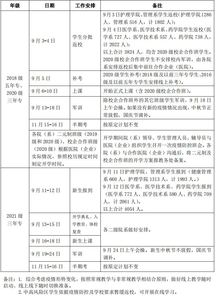 根據(jù)疫情現(xiàn)狀及學(xué)校工作安排,2021年秋季學(xué)期開學(xué)教學(xué)相關(guān)工作安排作如下調(diào)整: