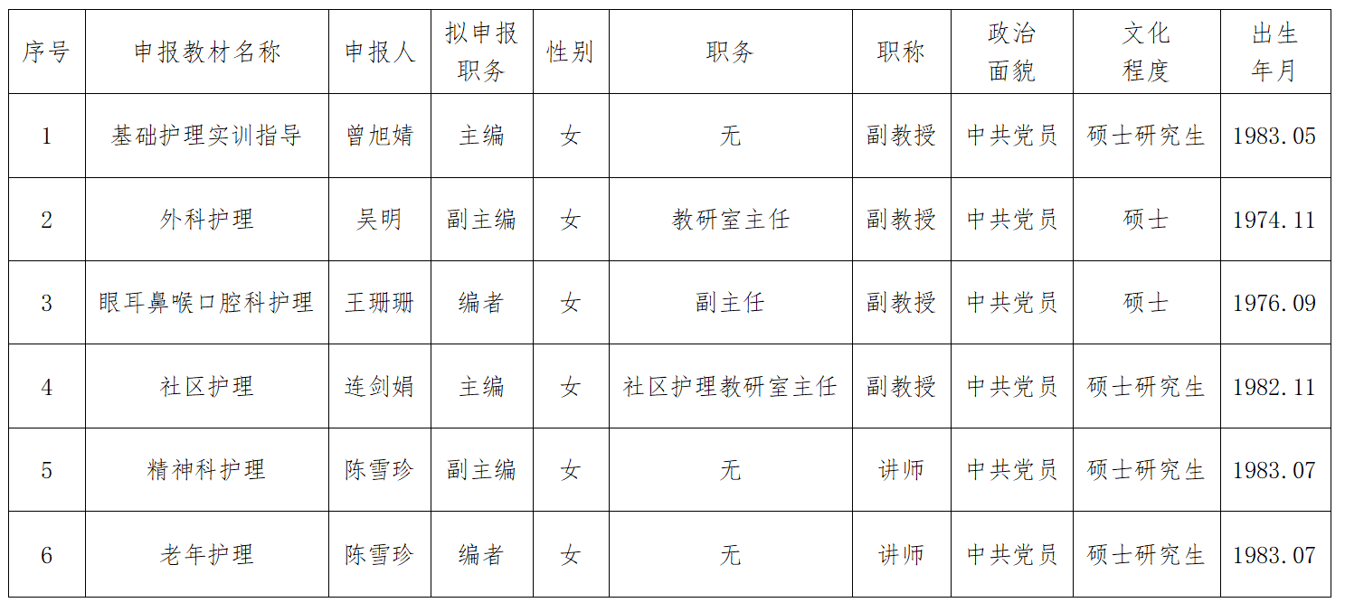 根據(jù)《職業(yè)院校教材管理辦法》(教材〔2019〕3號)文件要求,經(jīng)教師所在院部黨總支對曾旭婧、連劍娟、吳明、王珊珊、陳雪珍五位教師進行資格審查,確定教師政治立場堅定,擁護中國共產(chǎn)黨領導,認同中國特色社會主義,堅定“四個自信”,自覺踐行社會主義核心價值觀,具有正確的世界觀、人生觀、價值觀,堅持正確的國家觀、民族觀、歷史觀、文化觀、宗教觀,沒有違背黨的理論和路線方針政策的言行;熟悉職業(yè)教育教學規(guī)律和學生身心發(fā)展特點,對本學科專業(yè)有比較深入的研究,熟悉行業(yè)企業(yè)發(fā)展與用人要求;遵紀守法,有良好的思想品德、社會形象和師德師風;有足夠時間和精力從事教材編寫修訂工作,符合《職業(yè)院校教材管理辦法》所規(guī)定的教材編寫人員條件。