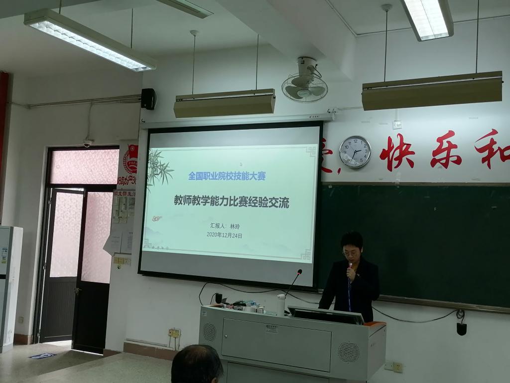 為積極總結(jié)和推廣參賽經(jīng)驗(yàn),進(jìn)一步提升教師教學(xué)能力和信息化教學(xué)水平,12月24日下午,由教務(wù)處組織舉辦 “2020年全國職業(yè)院校教學(xué)能力大賽經(jīng)驗(yàn)分享交流會(huì)”,會(huì)議組織2020年全國職業(yè)院校技能大賽教學(xué)能力比賽兩個(gè)獲獎(jiǎng)團(tuán)隊(duì)的全體成員為學(xué)校教師做經(jīng)驗(yàn)交流,這也是學(xué)校教師發(fā)展中心成立后一項(xiàng)重要活動(dòng),院長許能鋒、教務(wù)處、質(zhì)控辦及全校教師參加了交流會(huì)。交流會(huì)由教務(wù)處朱扶蓉處長主持。