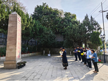 下午教務(wù)處、實(shí)習(xí)實(shí)訓(xùn)中心的黨員們準(zhǔn)時(shí)來到龜山烈士陵園。在革命烈士紀(jì)念碑前,全體黨員肅立默哀,向烈士們致以崇高的敬意和深切的緬懷。隨后,大家手持紙花,依次走到革命烈士紀(jì)念碑前,輕輕地將紙花擺放在碑前,表達(dá)對(duì)烈士們的敬仰和哀思。