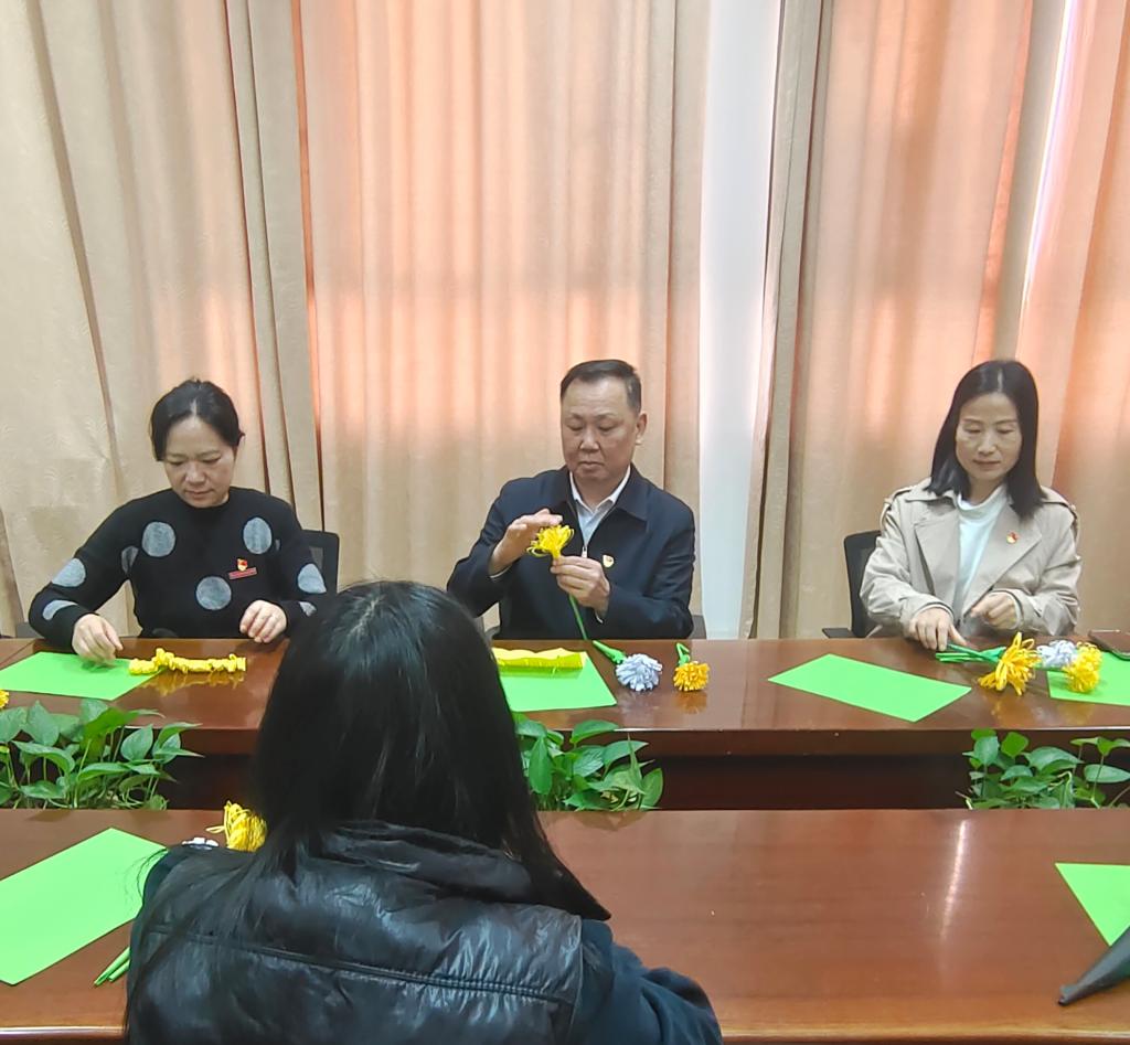 蒼松翠柏掩映下,110座烈士墓靜默矗立,斑駁的碑文銘刻著1949年福州戰(zhàn)役的壯烈史詩?;顒?dòng)伊始,大家圍坐成圓,將素白卡紙裁作八瓣雛形。隨著對(duì)角翻折、塑形固瓣、細(xì)捻花蕊等工序有序推進(jìn),百余朵手工紙菊漸次綻放,“革命理想高于天”的信念教育具象化為可觸可感的儀式載體。