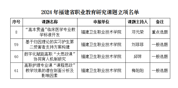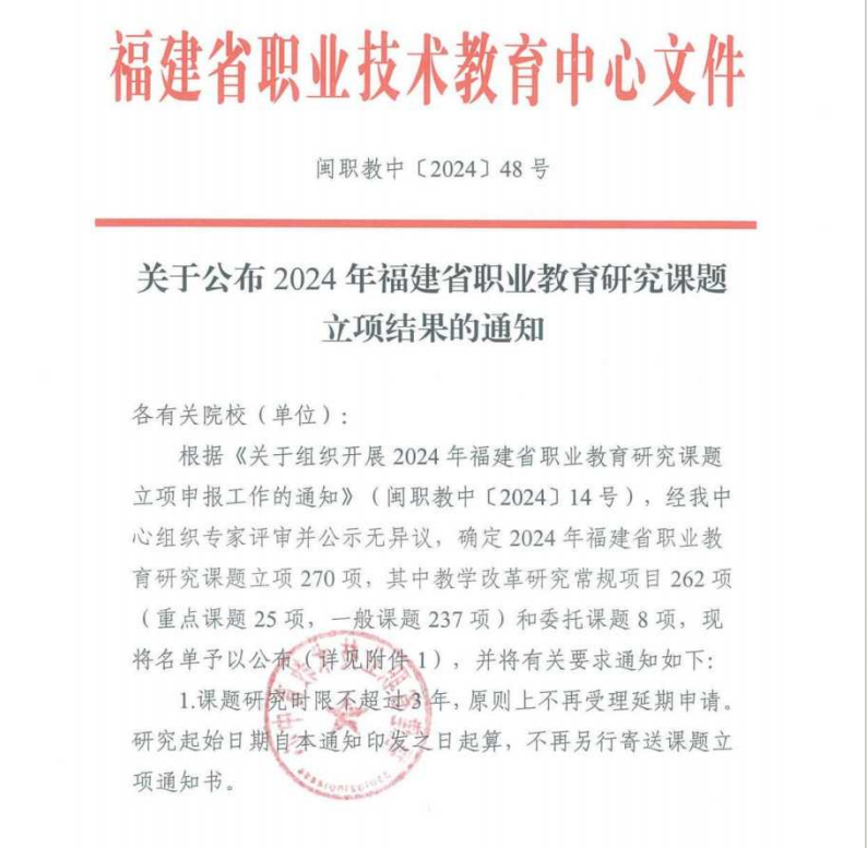 喜報!我校四項課題喜獲2024年福建省職業(yè)教育研究課題立項