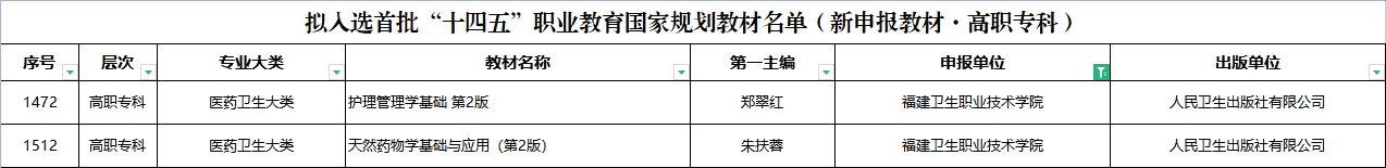 日前,教育部職業(yè)教育與成人教育司公示了入選首批“十四五”職業(yè)教育國家規(guī)劃教材名單,我校鄭翠紅教授主編的《護理管理學(xué)基礎(chǔ)(第2版)》和朱扶蓉教授主編的《天然藥物學(xué)基礎(chǔ)與應(yīng)用(第2版)》兩部教材入選。這是學(xué)校深入貫徹落實黨中央、國務(wù)院關(guān)于教材建設(shè)的決策部署和《國家職業(yè)教育改革實施方案》相關(guān)要求的重要成果,也是學(xué)?!半p高”建設(shè)取得的又一新成績。