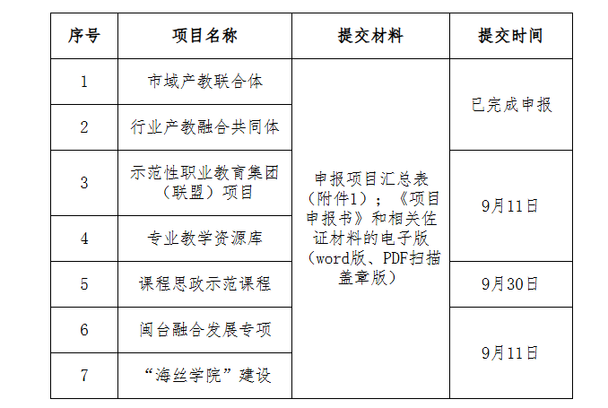 為推進學(xué)校全面深化產(chǎn)教融合項目建設(shè),根據(jù)《福建省教育廳關(guān)于開展2024年省級職業(yè)教育重點建設(shè)項目申報和驗收工作的通知》(閩教職成〔2024〕15號)要求,請各學(xué)院(部)結(jié)合自身專業(yè)和項目建設(shè)優(yōu)勢,積極申報2024年省級職業(yè)教育重點建設(shè)項目,同時文件中要求驗收的項目請相關(guān)學(xué)院(部)認(rèn)真研讀文件并做好驗收準(zhǔn)備。