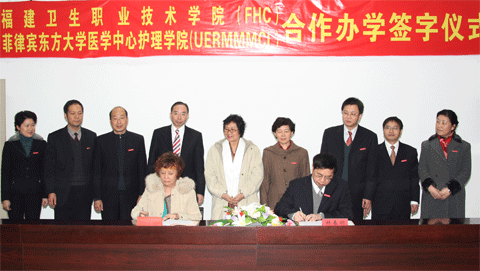 2010年1月15日,菲律賓東方大學(xué)雷蒙麥獅獅紀(jì)念醫(yī)學(xué)中心護(hù)理學(xué)院院長Carmelita Divinagracia等一行三人來我院訪問。Carmelita Divinagracia一行在院黨委書記嚴(yán)肅、院長林春明等領(lǐng)導(dǎo)的陪同下,參觀了學(xué)院和教學(xué)醫(yī)院省立醫(yī)院,詳細(xì)了解了我院的基本情況及護(hù)理專業(yè)建設(shè)情況,雙方就護(hù)理學(xué)專業(yè)合作辦學(xué)等事宜進(jìn)行了探討,并簽署了護(hù)理學(xué)專業(yè)合作辦學(xué)備忘錄。