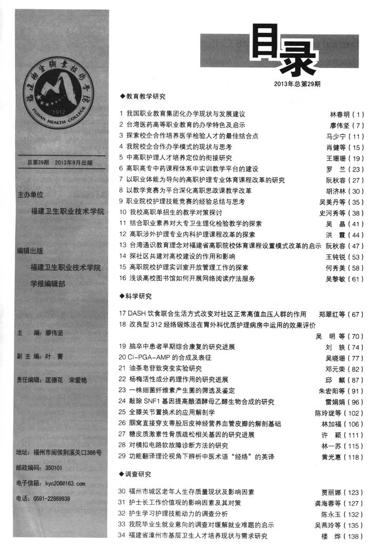 福建衛(wèi)生職業(yè)技術(shù)學(xué)院學(xué)報2013年總第二十九期 目錄