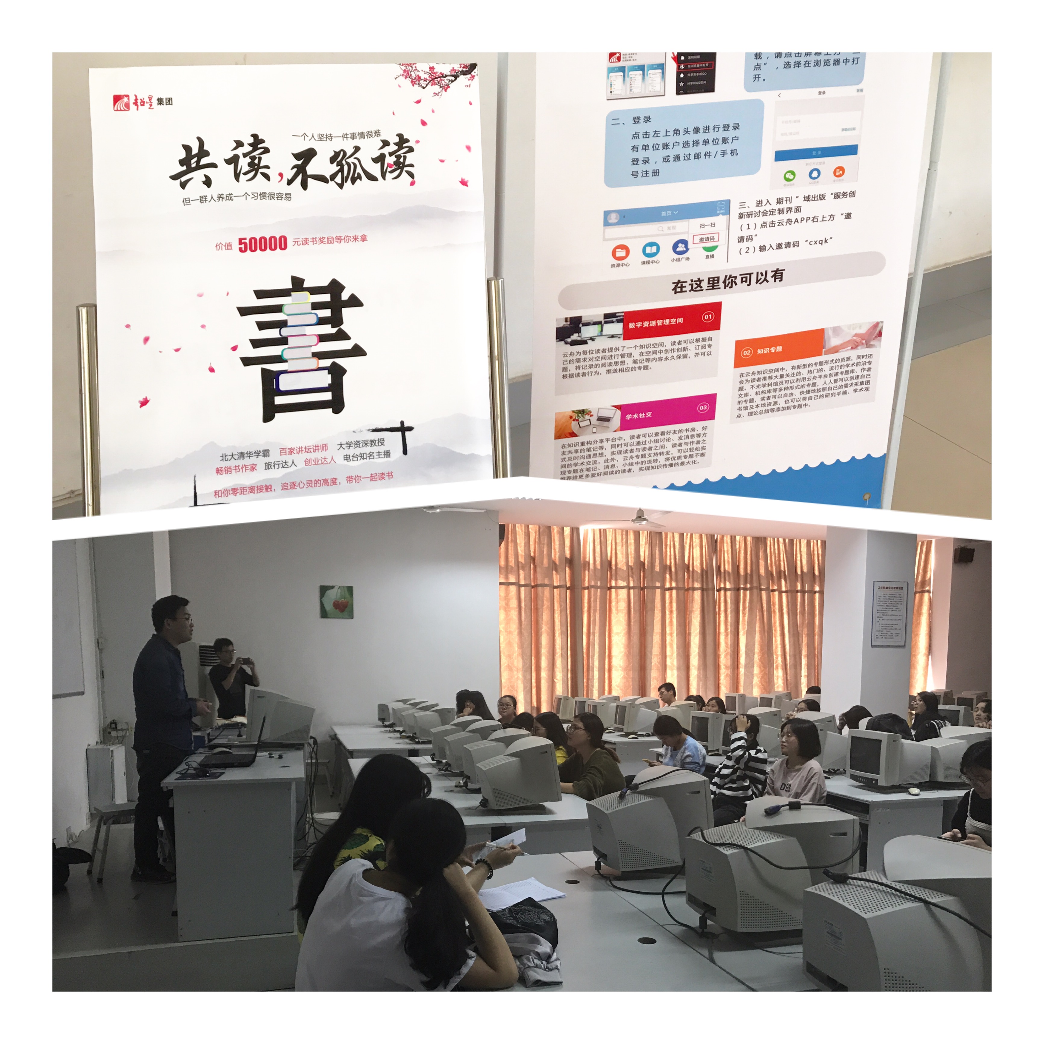 2017年11月2日下午2點,來自超星公司的培訓師來到圖書館201電子閱覽室,為有興趣參加共讀活動的同學們進行了活動講解和培訓。培訓師首先對此次活動的平臺——學習通APP進行了介紹,在同學們學會操作后,對此次活動的內容和規(guī)則進行了詳細的講解,同學們在現(xiàn)場進行了操作,并且順利登錄報名加入了共讀小組,現(xiàn)場氣氛熱烈,大家紛紛表示將積極參與這次共讀活動。