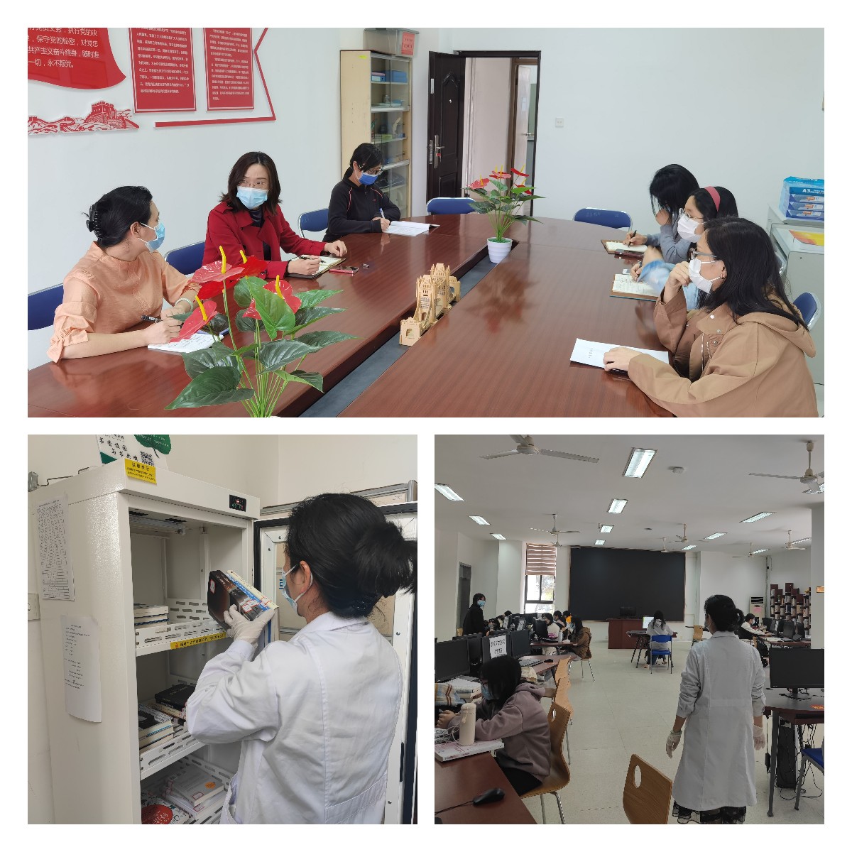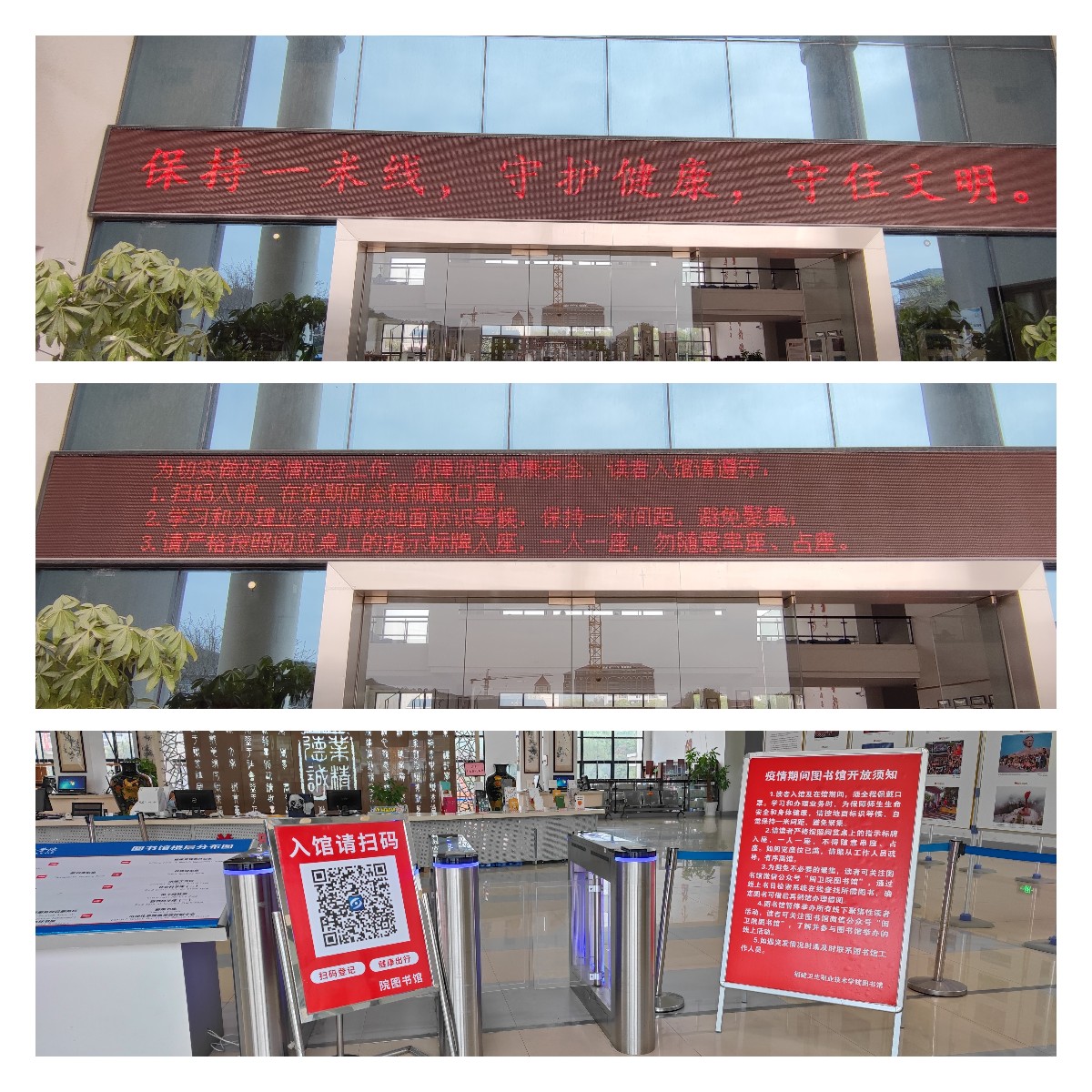 隨著疫情防控形勢變化,圖書館三次召開疫情防控專項工作會議,傳達上級和學(xué)校黨委關(guān)于從嚴從緊抓好疫情防控各項要求,立即調(diào)整工作流程,統(tǒng)籌部署各崗位疫情防控職責(zé)。館內(nèi)工作人員嚴格執(zhí)行出入校管理規(guī)定,落實“家校兩點一線”上班模式,切實保障師生讀者健康安全。