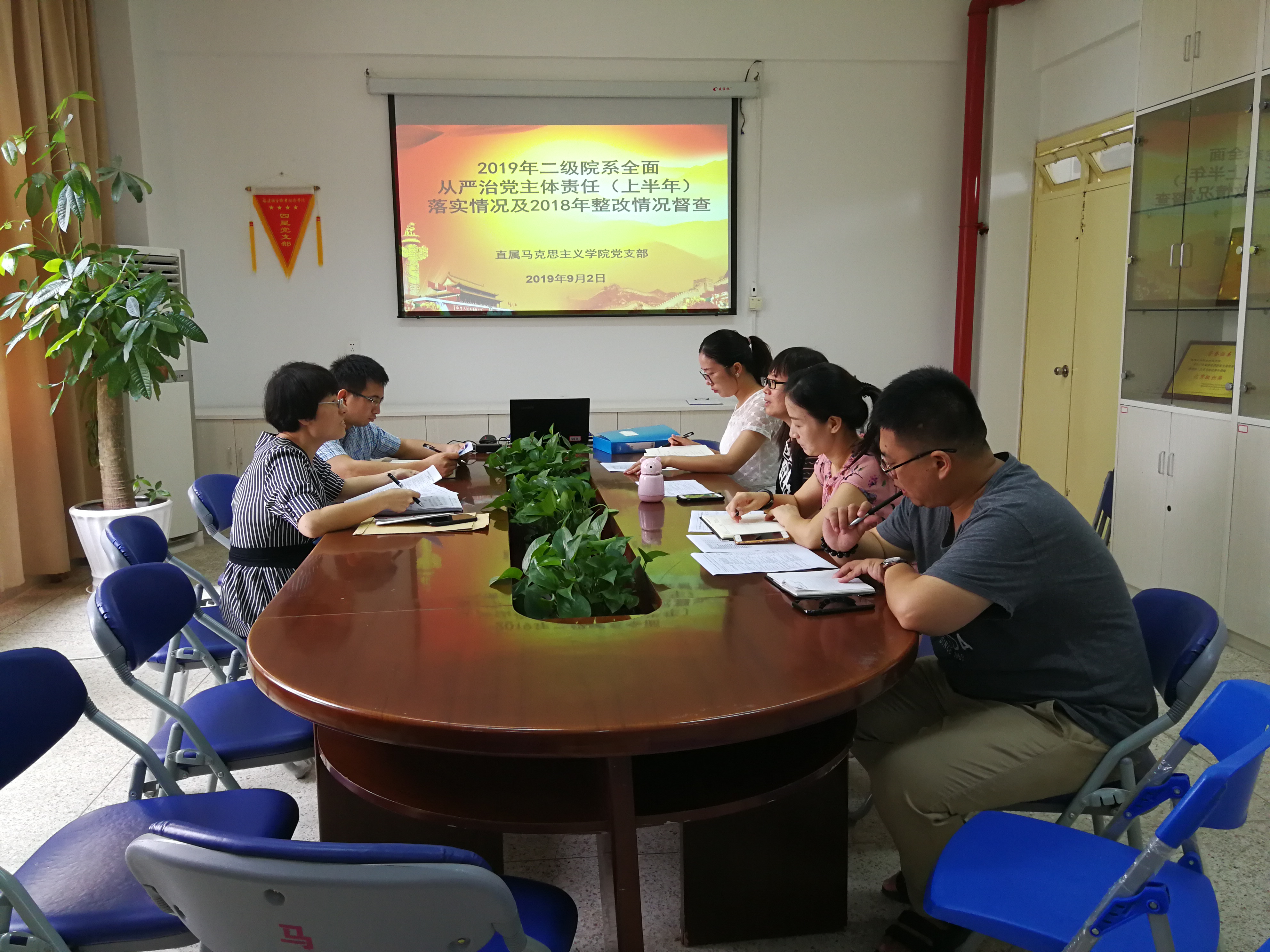 2019年9月2日上午,校黨委工作部副部長柯瓊鶯、綜合科科長謝宗穎蒞臨馬克思主義學(xué)院 開展2019年 二級(jí)院系 全面從嚴(yán)治黨主體責(zé)任 (上半年) 落實(shí)情況 及2018年整改情況 督查 。直屬馬克思主義學(xué)院黨支部書記熊美蘭、組織兼紀(jì)檢委員楊盈、宣傳委員江洪及來朋珍老師、許一柱老師等參加了會(huì)議。
