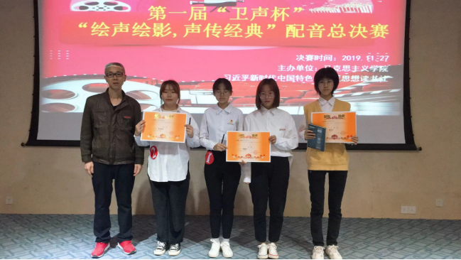 2019年11月27日晚,由我校習(xí)近平新時(shí)代中國特色社會(huì)主義思想讀書社(簡稱“讀書社”)主辦的第一屆“衛(wèi)聲杯”繪聲繪影紅色經(jīng)典影視片段配音大賽總決賽在實(shí)訓(xùn)樓報(bào)告廳舉行。校團(tuán)委書記黃曦老師、馬克思主義學(xué)院院長熊美蘭老師、教師代表及院學(xué)生社團(tuán)聯(lián)合會(huì)主席沈培同學(xué)出席了本次大賽。在讀書社全體指導(dǎo)教師的悉心指導(dǎo)下,來自檢驗(yàn)、護(hù)理等不同專業(yè)8位同學(xué)的6組作品披荊斬棘進(jìn)入了決賽,展開了激烈的角逐,一場別樣的思政課精彩上演。