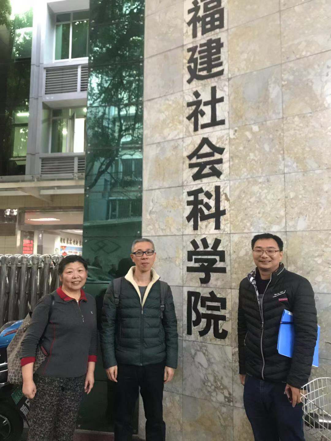 為了更好地開展我院教師承擔(dān)的省中特研究中心的課題,2020年1月3日下午,馬克思主義名譽(yù)院長魏立娜教授、概論教研室主任胡濟(jì)林副教授、張崇飛老師一行三人前往福建社會科學(xué)院調(diào)研,受到福建社會科學(xué)院現(xiàn)代臺灣研究所副所長、研究員蘇美祥的熱情接待。