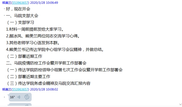 2020年3月28日上午,馬克思主義學(xué)院在線上召開了疫情防控工作會(huì)暨開學(xué)前工作部署會(huì)。會(huì)議由馬克思主義學(xué)院熊美蘭院長主持,馬院全體教師參加了會(huì)議。